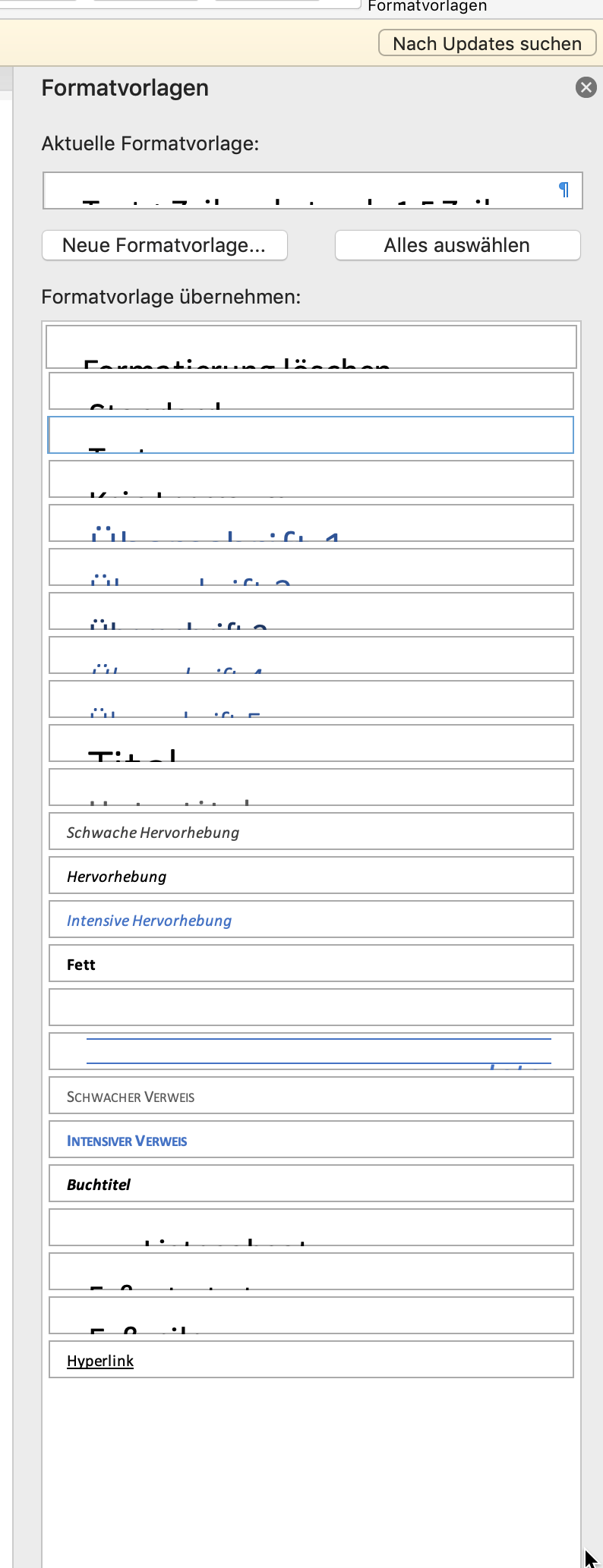 Das Dokument dann speichern und die Option wieder deaktivieren, damit die Formatvorlagen nicht bei jedem Öffnen überschrieben werden: