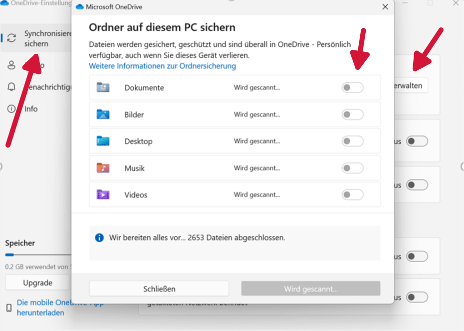In Bezug auf Ihre Anforderung, keine Ordner standardmäßig zu synchronisieren, müssen Sie die Synchronisierung der Ordner in der Synchronisierung und Sicherheit von OneDrive aufheben und dann die Ordner, die Sie regelmäßig mit OneDrive synchronisieren müssen, manuell hochladen. Einstellungen in der oberen rechten Ecke der Popup-Oberfläche > Nachdem Sie auf Einstellungen geklickt haben, wählen Sie auf der Popup-Seite Synchronisieren und Sichern aus, > Klicken Sie in der Popup-Oberfläche auf Sicherungen verwalten > Alle Ordnersicherungen abbrechen.