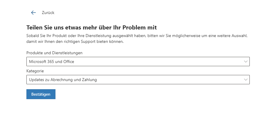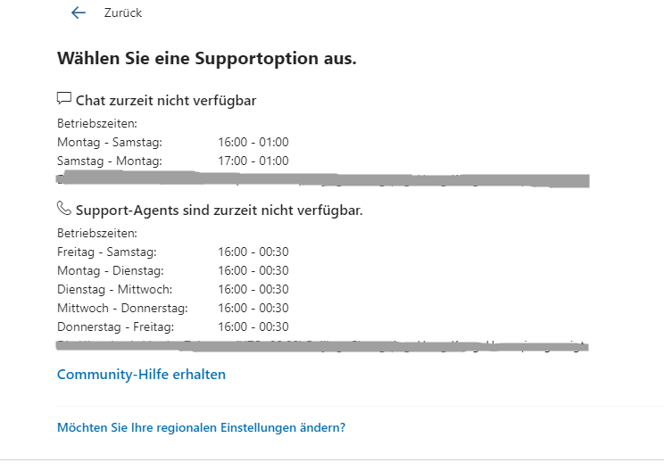 - Sie sehen Kontaktoptionen für den Chat-Support und den Telefon-Support:
