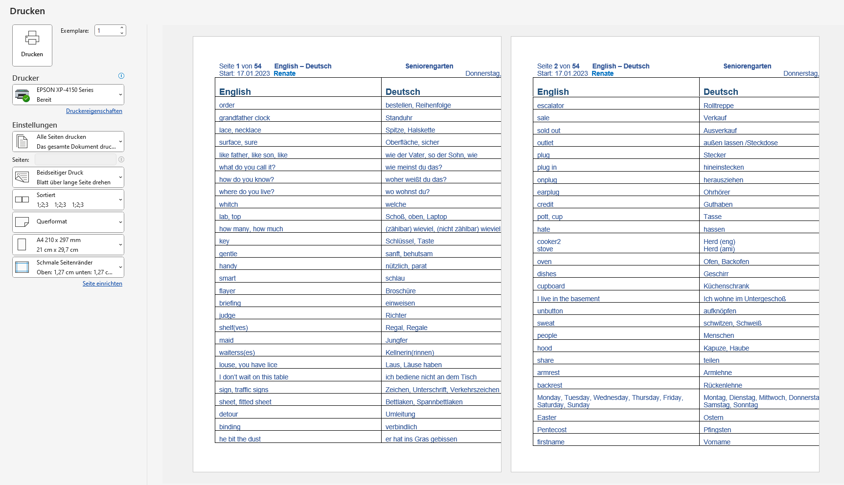 ich möchte ein 34 seitiges Dokument in MS-Word als "Buch" ausdrucken. Das Problem ist, das das Dokument nicht auf A5 Format verkleinert wird. Das Layout wird nicht am Bildschirm angepasst. Die org. Vorlage ist eine auf A4 in MS-Word erstellte 2 spaltige Tabelle. (Dictionary Deutsch -English))