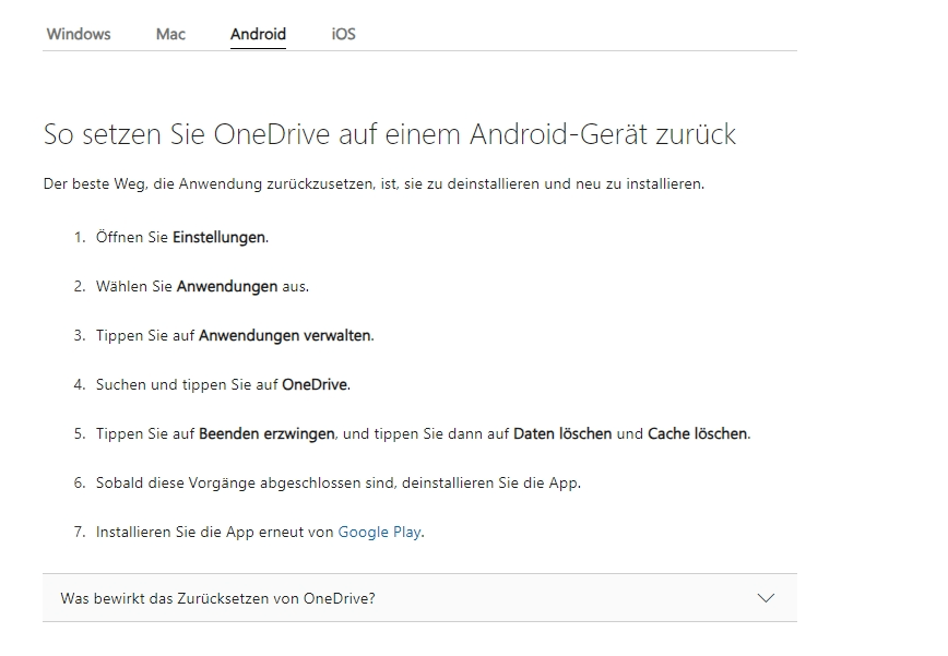 Zurücksetzen von OneDrive: Sie können die Schritte in diesem verknüpften Dokument ausführen.