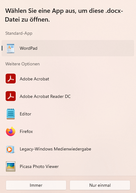 Den Lösungsansatz über den Link habe ich probiert, aber auch hier findet sich kein Word zur Auswahl. Als wäre das Programm plötzlich vom PC gelöscht. In den letzten 10 Jahren lief es problemlos.