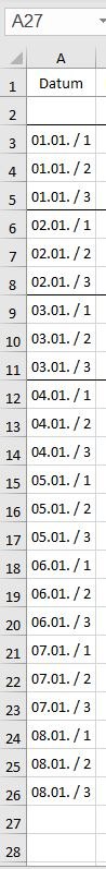 Noch dazu sollte jeder Monat durch eine leere Spalte getrennt werden, welche man auch gerne farblich hervorheben kann, aber das sind "optische Einstellungen".