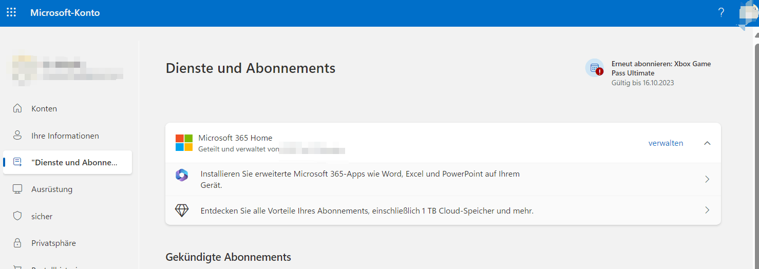 Überprüfen Sie den Abonnementstatus: Sie können den Status Ihres Microsoft 365-Abonnements überprüfen, indem Sie zum Microsoft-Konto| account.microsoft.com -> Seite Dienste und Abonnements . Hier können Sie sehen, ob Ihr Abonnement aufgeführt ist und welchen Status es hat.