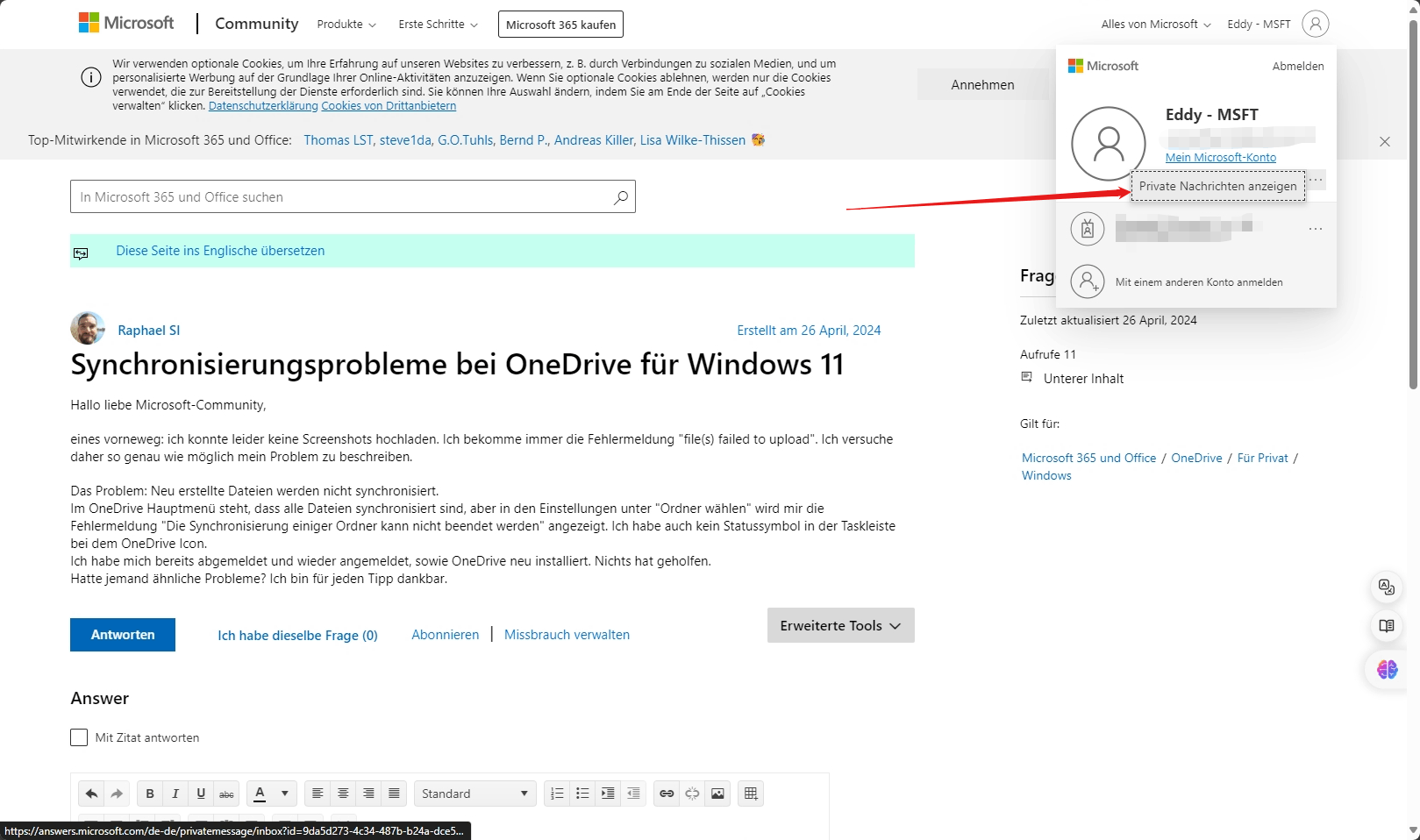 In letzter Zeit hat das Community-Forum eine Situation erlebt, in der Bilder nicht richtig hochgeladen werden, und ich möchte Sie einladen, mir Screenshots der Fehler, die Sie haben, sowie der Dateien, mit denen Sie Probleme haben, per privater Nachricht zur Verfügung zu stellen: Bitte klicken Sie auf Ihren Avatar in der oberen rechten Ecke der Seite > Klicken Sie auf die drei Punkte in der unteren rechten Ecke Ihres Benutzernamens in der Pop-up-Bildschirm > Klicken Sie auf Private Nachricht anzeigen .