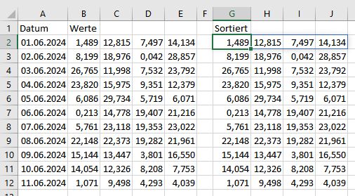 Jetzt sortiert er Zeilen (und nicht Spalten).