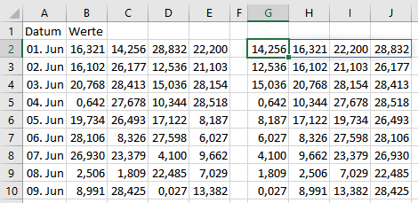 Erstmal Danke für die Antwort, aber leider klappt es so nicht. Die Werte werden quasi 1:1 kopiert. Ist in Ihrem Beispiel auch so.