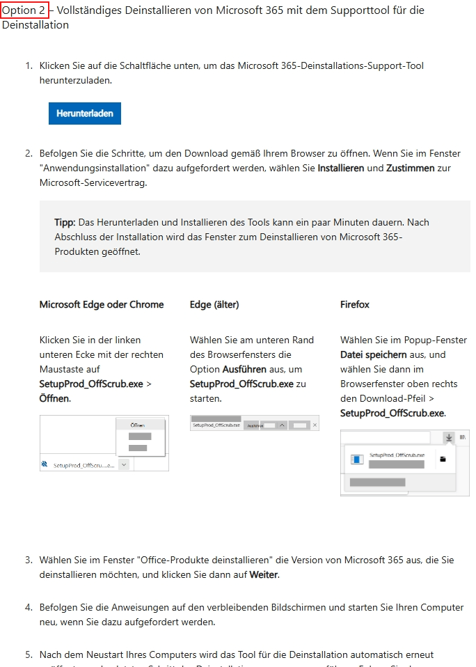 - So deinstallieren Sie Office mithilfe des Offlineinstallationspakets und installieren es neu: Versuchen Sie, die Office-Anwendung mit dem Tool zur automatischen Deinstallation zu deinstallieren. Der folgende Link und die Screenshots enthalten spezifische Schritte.