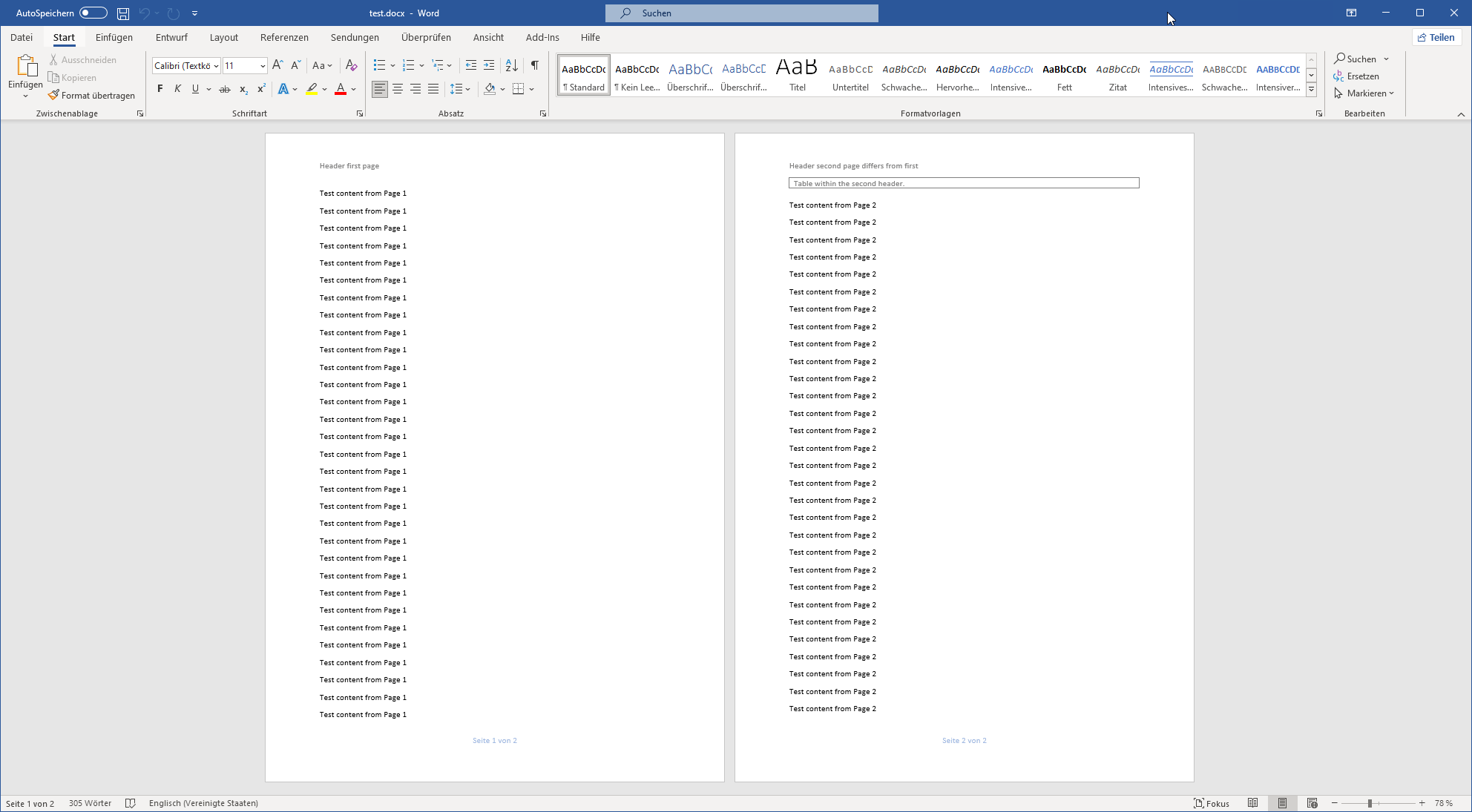 Die Kopfzeilen sind mit "Erste Seite anders" eingerichtet. Ich habe es gerade auch mit "Gerade/ungerade" ausprobiert, dort tritt das gleiche Phänomen auf.