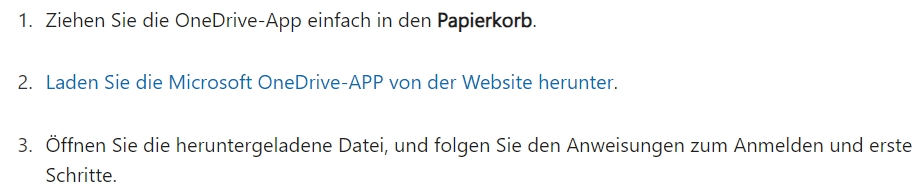 Haben Sie dieses Verfahren befolgt, um OneDirve neu zu installieren?