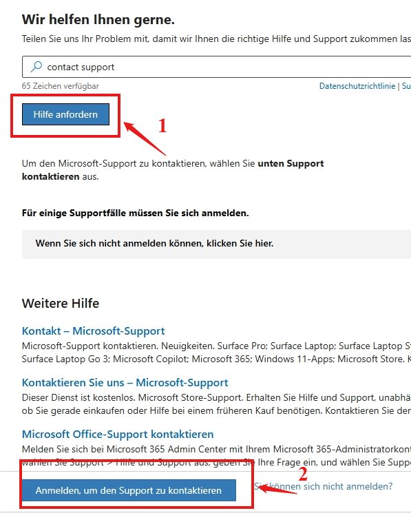 Kontakt Online Support:Kontakt – Microsoft-Support