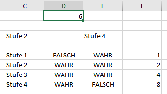 =WENN(UND(C3="Stufe 1";E3="Stufe 5");Datensammlung!G5+Datensammlung!G6+Datensammlung!G7+Datensammlung!G8;WENN(UND(C3="Stufe 2";E3="Stufe 5");Datensammlung!G6+Datensammlung!G7+Datensammlung!G8;WENN(UND(C3="Stufe 3";E3="Stufe 5");Datensammlung!G7+Datensammlung!G8;WENN(UND(C3="Stufe 4";E3="Stufe 5");Datensammlung!G8;WENN(UND(C3="Stufe 1";E3="Stufe 4");Datensammlung!G5+Datensammlung!G6+Datensammlung!G7;WENN(UND(C3="Stufe 1";E3="Stufe 3");Datensammlung!G5+Datensammlung!G6;WENN(UND(C3="Stufe 1";E3="Stufe 2");Datensammlung!G5;WENN(UND(C3="Stufe 3";E3="Stufe 5");Datensammlung!G7+Datensammlung!G8;WENN(UND(C3="Stufe 2";E3="Stufe 4")*Datensammlung!G6+Datensammlung!G7;WENN(UND(C3="Stufe 2";E3="Stufe 3");Datensammlung!G6;""))))))))))