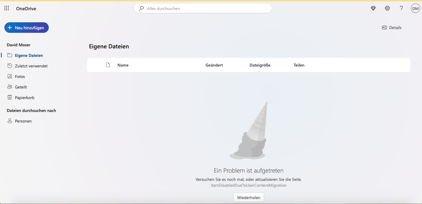 Vielen Dank für Ihre Antwort: One Drive zeigt keine eigenen Dateien mehr an (vgl. Screenshot) und auch die Funktion "one drive wiederherstellen" funktioniert nicht. Merci für die Unterstützung und mit freundlichem Gruss