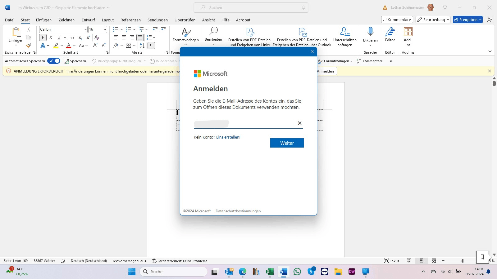 Starte Word 365.