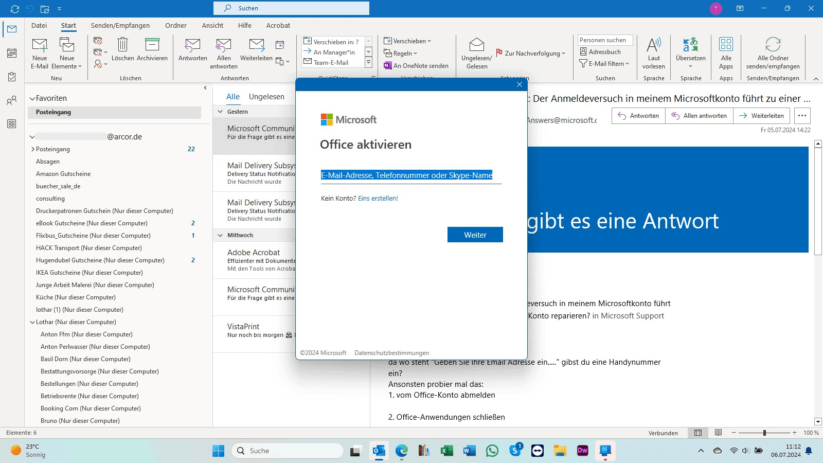 Melde dich von deinem Microsoft Konto ab.