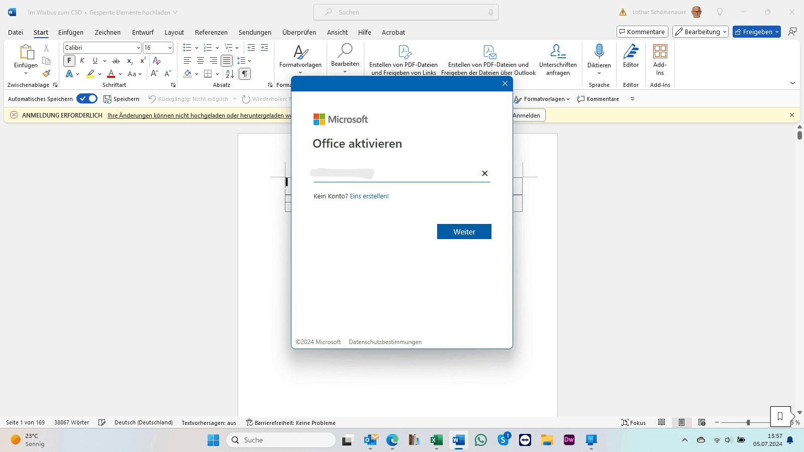 Beende alle Office-Programme.