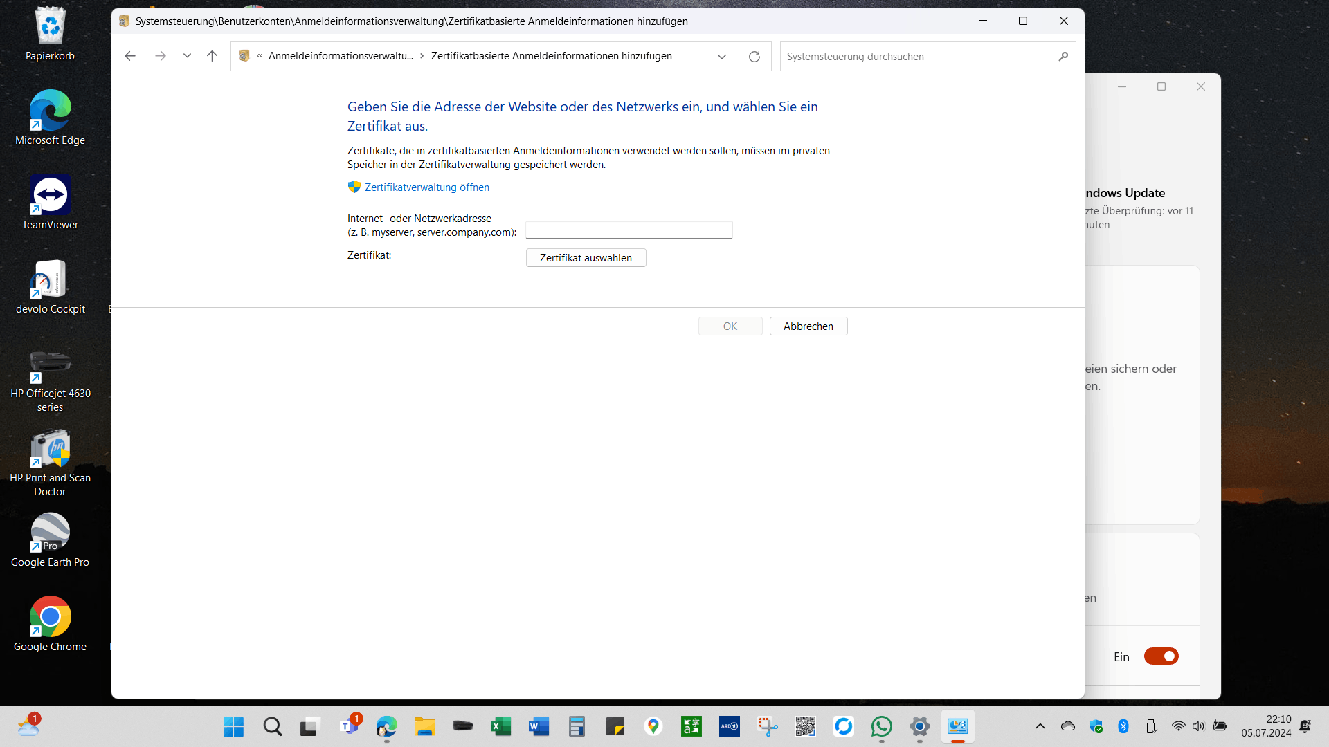 Es wird jetzt aber Internet-oder Netzwerkadresse, Benutzername und Kennwort verlangt.