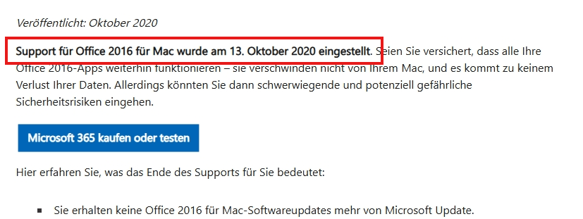 Sie müssen Ihnen erklären, dass, da Office 2016 eine frühe Version ist, Microsoft den Support für Office 2016 eingestellt hat, es möglicherweise einige Standortfehler geben kann, die Sie den folgenden Anweisungen folgen können: Ende des Supports für Office 2016 und Office für Mac - Microsoft-Support