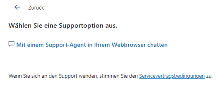 Wählen Sie "Mit einem Supportmitarbeiter in einem Webbrowser chatten".