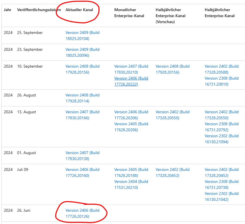 Wenden Sie sich an Ihre IT-Abteilung, um Ihren Aktualisierungskanal in den aktuellen Kanal zu ändern.