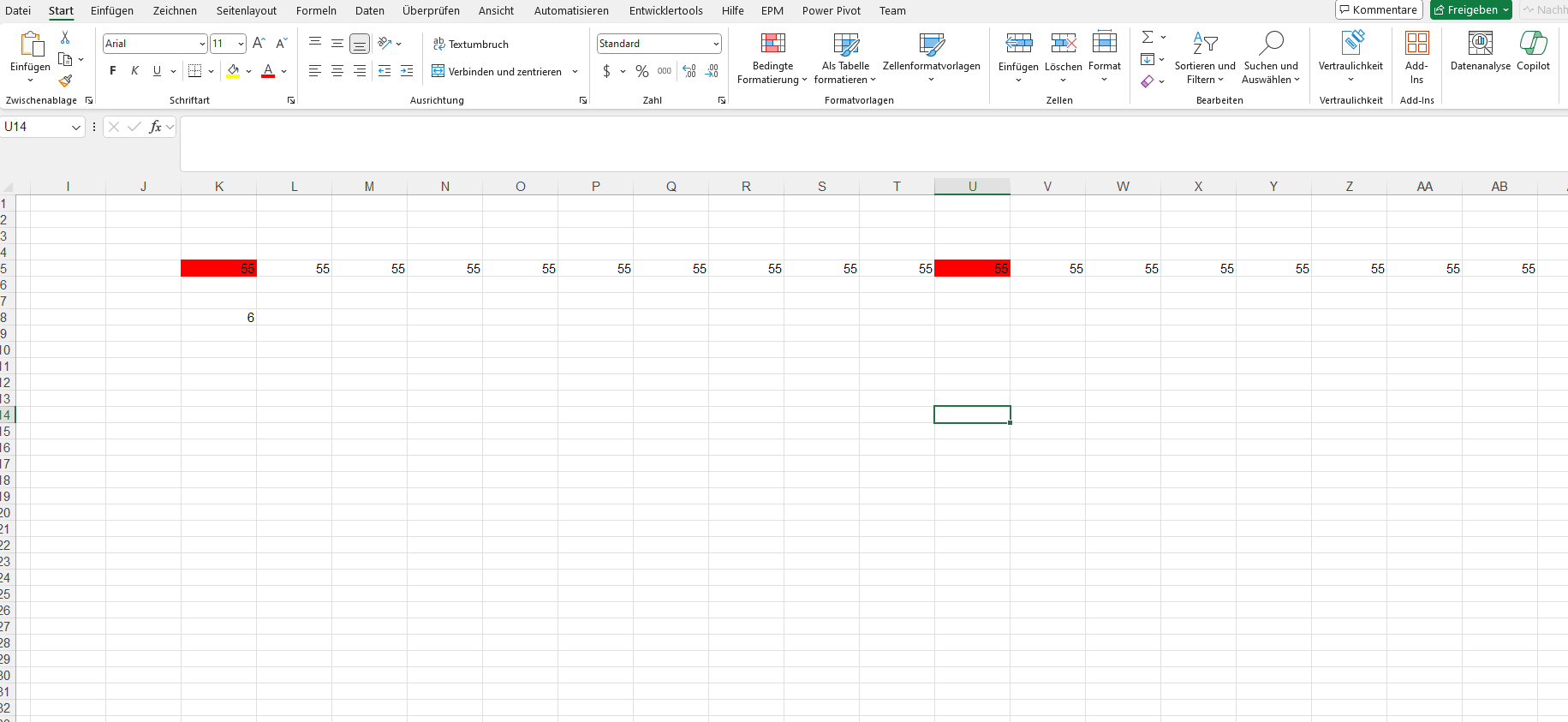 Das funktioniert leider nicht, da nur die genannten Zellen (K5, U5, AE5, ...) überprüft werden sollen. In den anderen Zellen dazwischen befinden sich auch Zahlen. diese sollen nicht berücksichtigt werden.