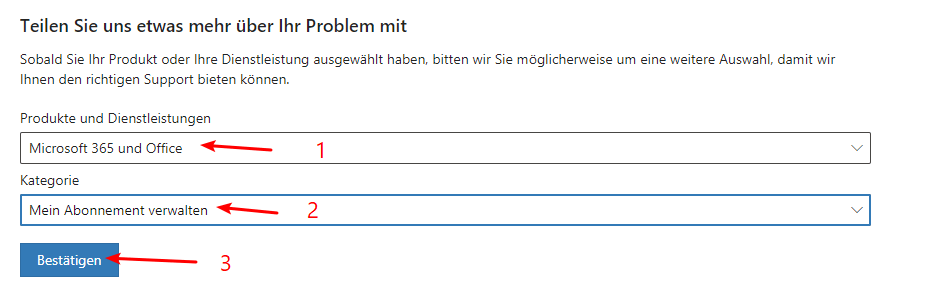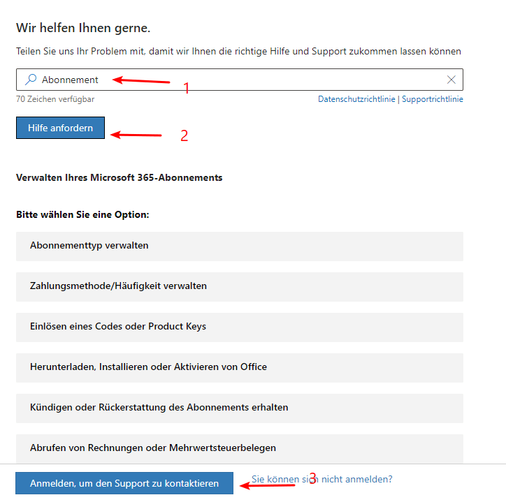 Im Folgenden finden Sie die Schritte zur Kontaktaufnahme mit dem Microsoft-Support: