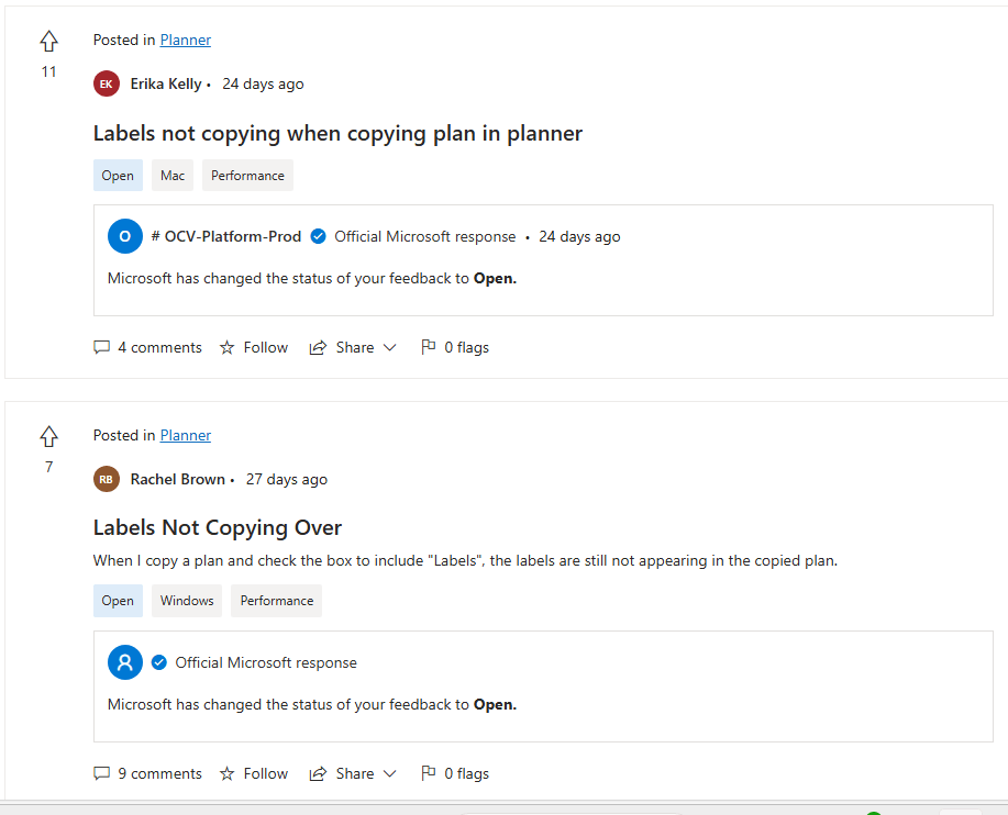 Gemäß der Beschreibung verstehe ich, dass Planner nicht alle Namen (Farben) kopieren kann, wenn Sie eine Planvorlage kopieren möchten. Ich habe auch meinerseits einige Tests durchgeführt und kann das fehlende Farbverhalten bestätigen.