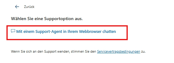 7.Sie können jetzt in Ihrem Webbrowser die Option Chat mit einem Support-Mitarbeiter auswählen.