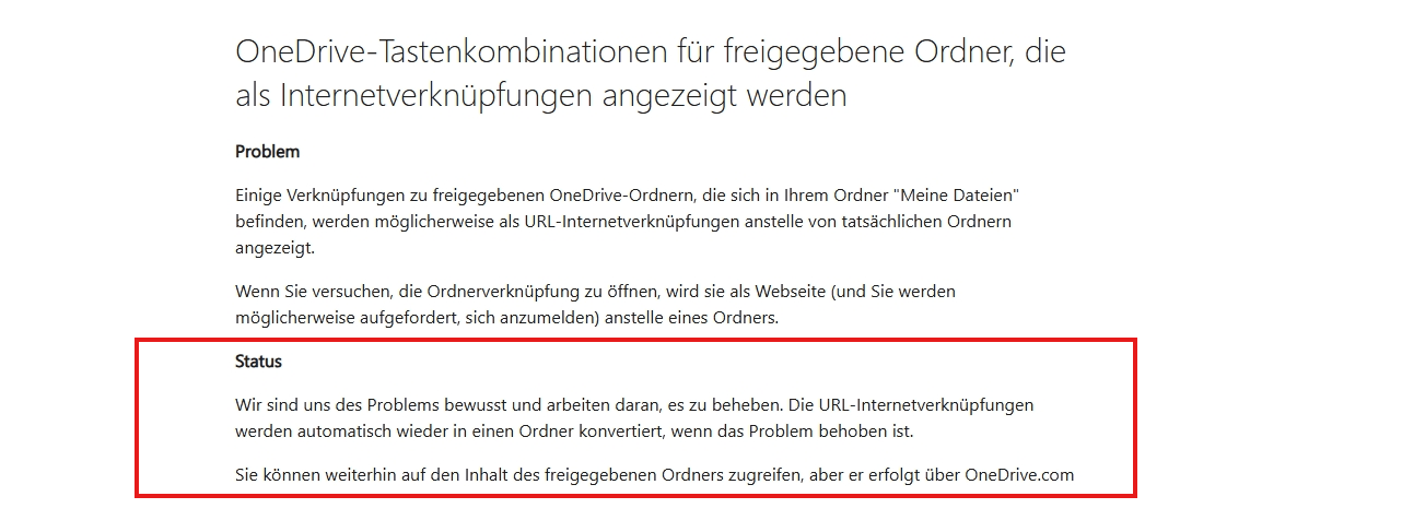 **** Microsoft ist sich dieses Problems jedoch bewusst und arbeitet an einer Lösung. Sobald das Problem behoben ist, werden die .url-Dateien automatisch wieder in Ordner konvertiert.