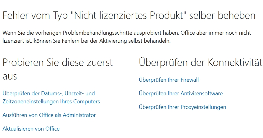 Bitte beziehen Sie sich auf die von Arthur C. aufgeworfene Frage, da diese Details entscheidend sind, um Ihre Bedenken in dieser Angelegenheit auszuräumen. In der Regel kann dies aufgrund von Änderungen im Lizenzierungs- und Aktivierungsprozess für Microsoft 365 geschehen.