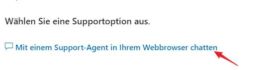 - Sie können jetzt in Ihrem Webbrowser die Option "Mit einem Supportmitarbeiter chatten" auswählen.