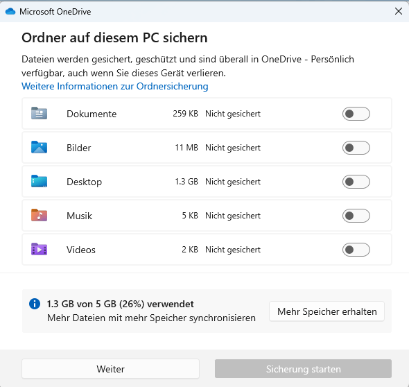 Andere lokale Dateien außerhalb des OneDrive-Ordnerssind jedoch nicht betroffen.
