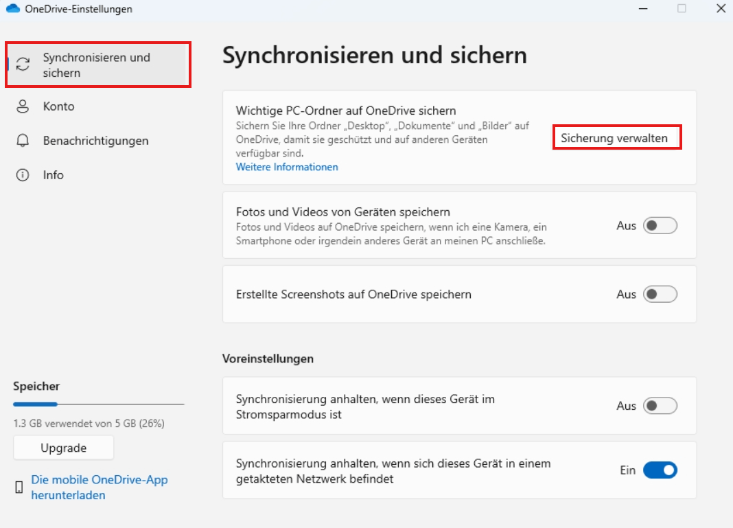 Weitere Informationen finden Sie unter Sichern von Ordnern mit OneDrive - Microsoft Support