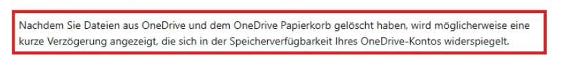 Da die Dateien im OneDrive-Papierkorb noch Speicherplatz einnehmen, melden Sie sich bitte online in Ihrem Browser bei OneDrive an .
