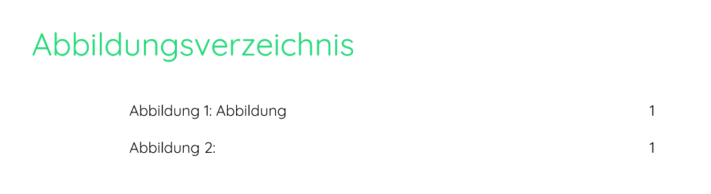 ich habe ein Abbildungsverzeichnis erstellt. Doch jedes Mal, wenn ich das Verzeichnis aktualisiere, werden die einzelnen Punkte nach rechts eingezogen (siehe Screenshot unten). Eigentlich möchte ich, dass die Nummer und der Name der Abbildungen linksbündig mit der Überschrift "Abbildungsverzeichnis" ist.