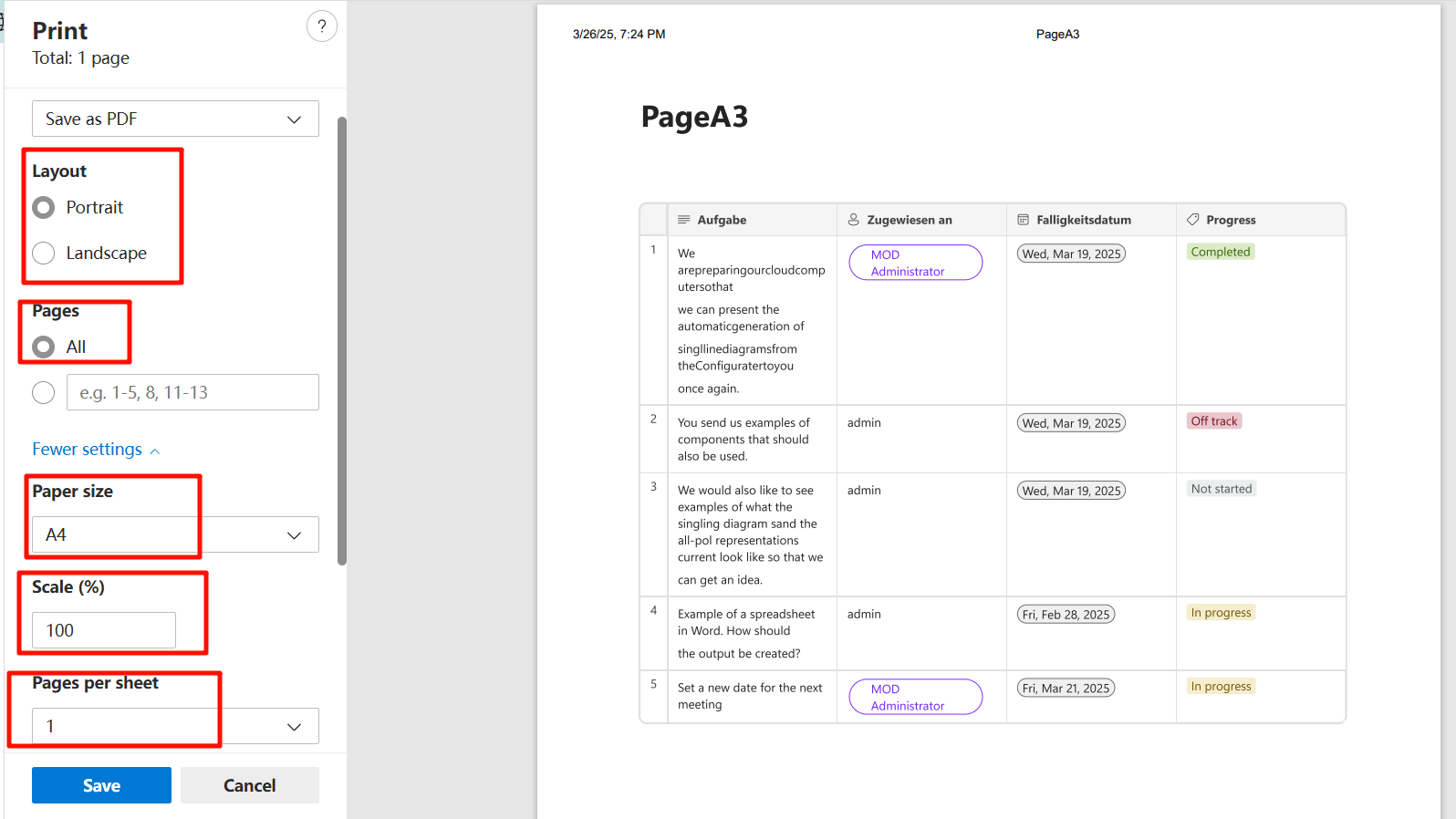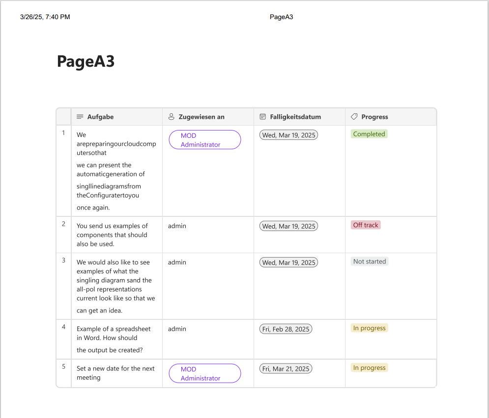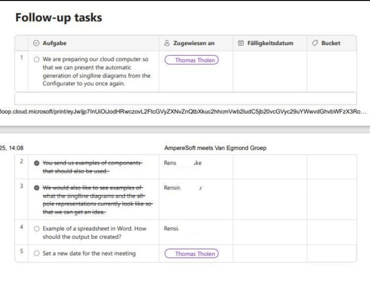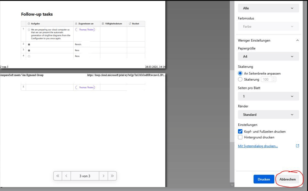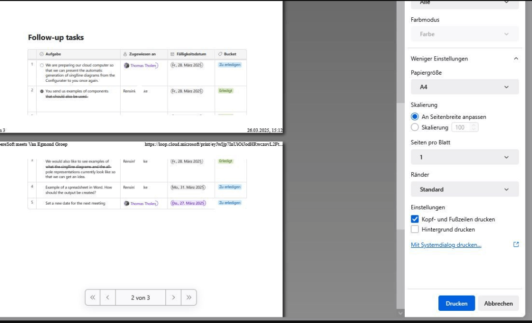 - Könnten Sie bitte zusätzlich 1) einen Screenshot der Agenda auf der Loop-Seite 2) einen Screenshot der Druckeransicht zur Verfügung stellen, damit wir beide vergleichen und mehr Einblicke erhalten können.