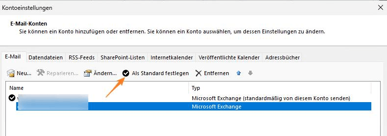 🥇Legen Sie das richtige Standardkonto in Outlook fest: