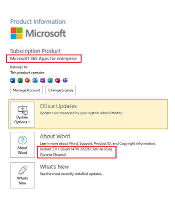 Sie können auf Datei> Konto klicken und die relevanten Informationen wie unten gezeigt überprüfen.