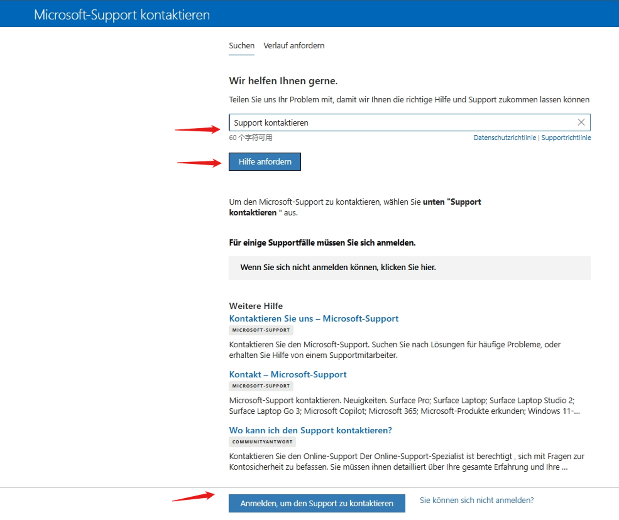 - Besuchen Sie diese Website: Kontakt – Microsoft-Support