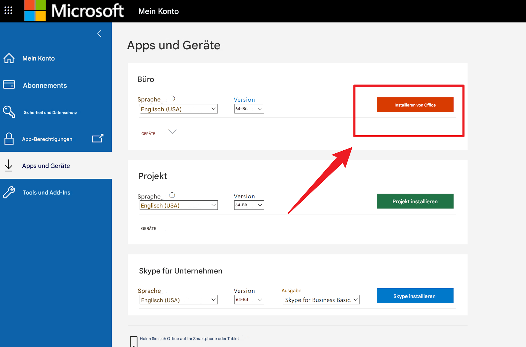 - Anmelden mit Ihrem Schulkonto --->> Installieren und mehr --->> Installieren von Microsoft 365-Apps