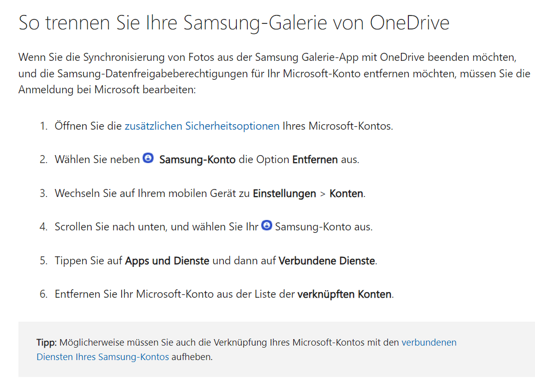 Weitere Informationen finden Sie unter: Samsung, Microsoft OneDrive und der Datenschutz - Microsoft-Support