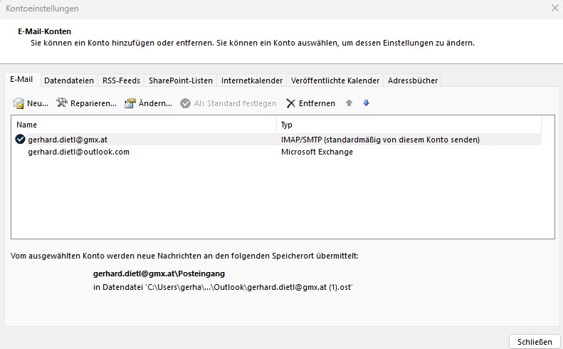Datei > Kontoeinstellungen > Registerkarte „Datendateien“