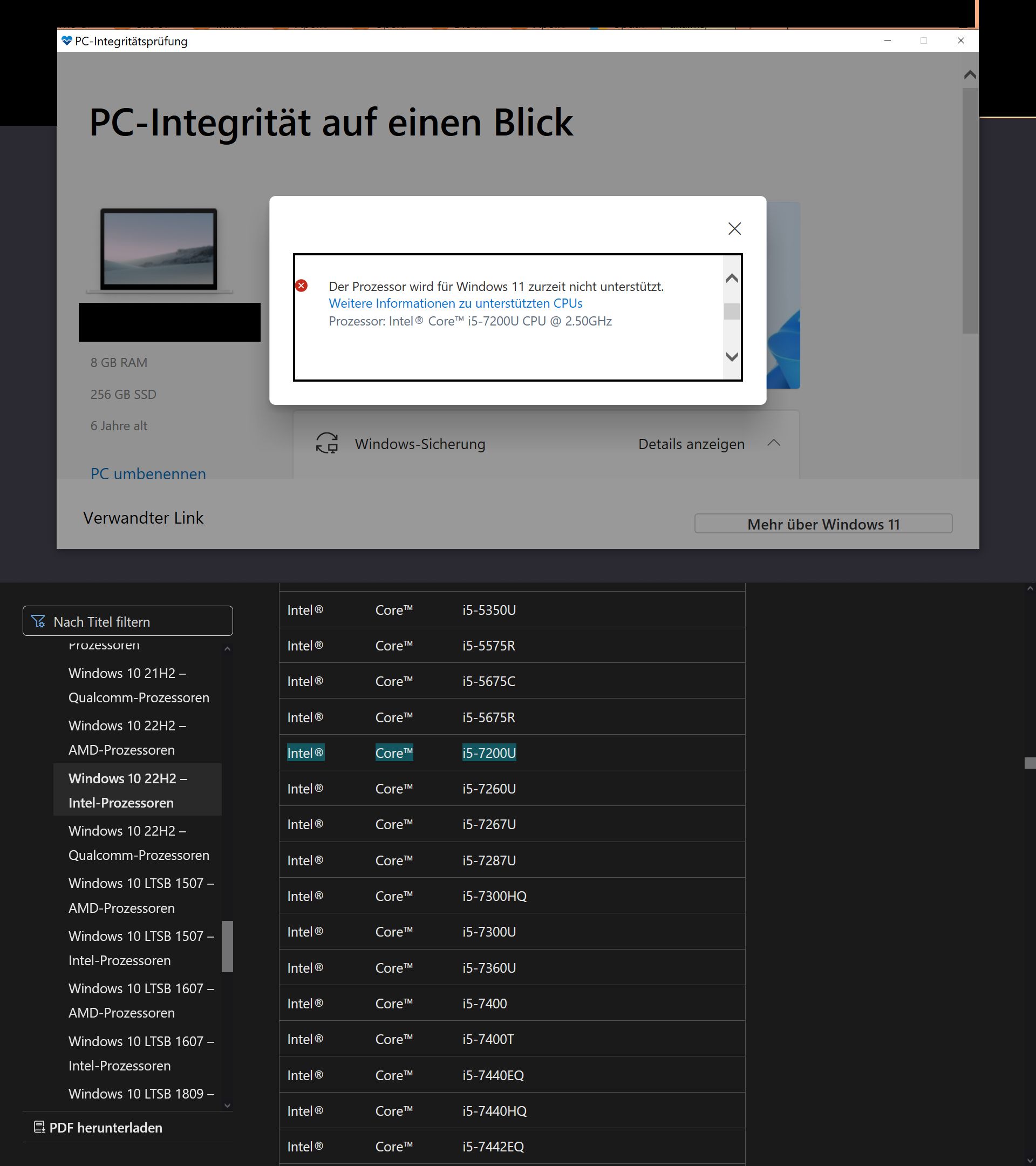 Ja, mea culpa. Ich ging davon aus, ohne sonst mehr aufzupassen, dass die Liste Modelle präsentiert, die man als Start-System besitzt, bevor man zu Windows 11 migriert. Jetzt sehe ich ja in der richtigen Liste, dass mein CPU nicht dabei ist.