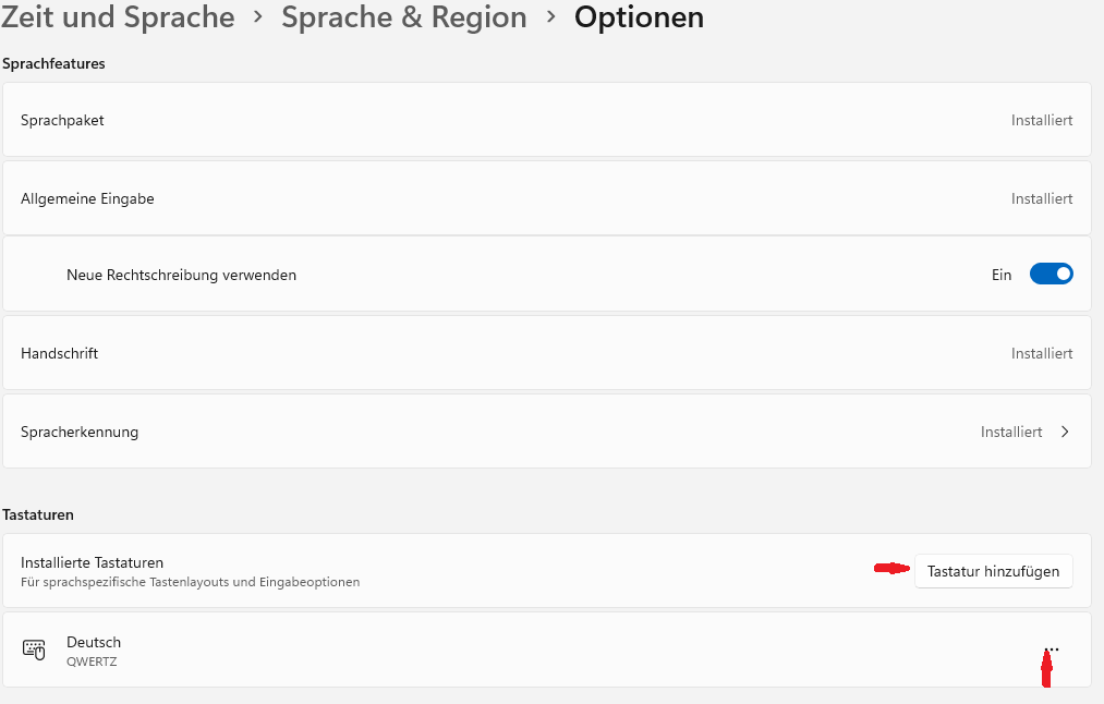 Gehe in "Einstellungen > Zeit und Sprache > Sprache und Region", hier findest du das Tastaturlayout.
