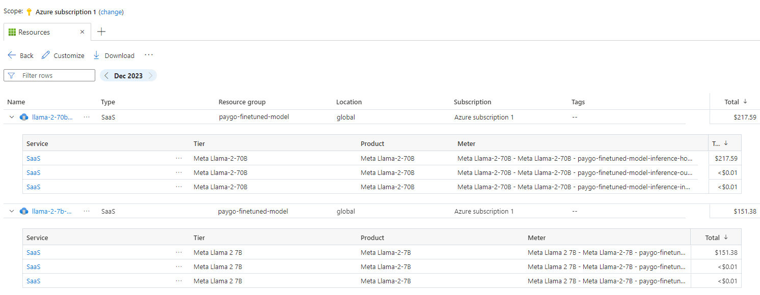 Überwachen der Kosten für Modelle in Azure Marketplace