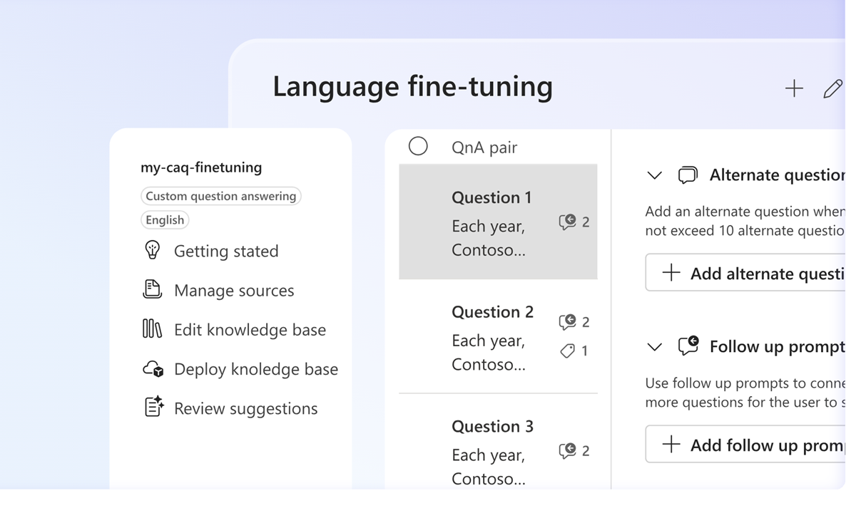 Die Frageantwort ist ein benutzerdefiniertes Feature, das die am besten geeignete Antwort für Benutzereingaben identifiziert. Dieses Feature wird in der Regel verwendet, um Unterhaltungsclientanwendungen zu entwickeln, einschließlich Social-Media-Plattformen, Chat-Bots und sprachfähige Desktopanwendungen.