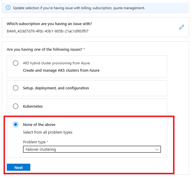 Wählen Sie den entsprechenden Problemtyp aus dem Dropdownmenü für Ihr Problem aus (z. B. Setup, Bereitstellung und Konfiguration).