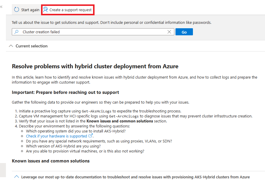 Wenn ein Problem mit AKS auf Azure Local auftritt, wird in diesem Artikel beschrieben, wie Sie eine Supportanfrage öffnen.