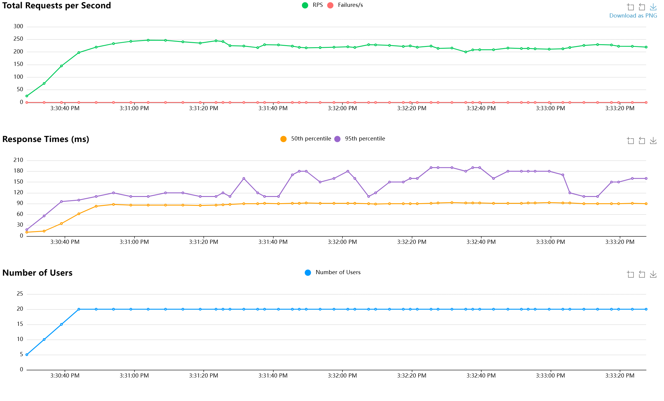 Vergewissern Sie sich auf dem Locust- und dem Mongo Express-Dashboard, dass der MongoDB-Cluster weiterhin Anforderungen bedient.