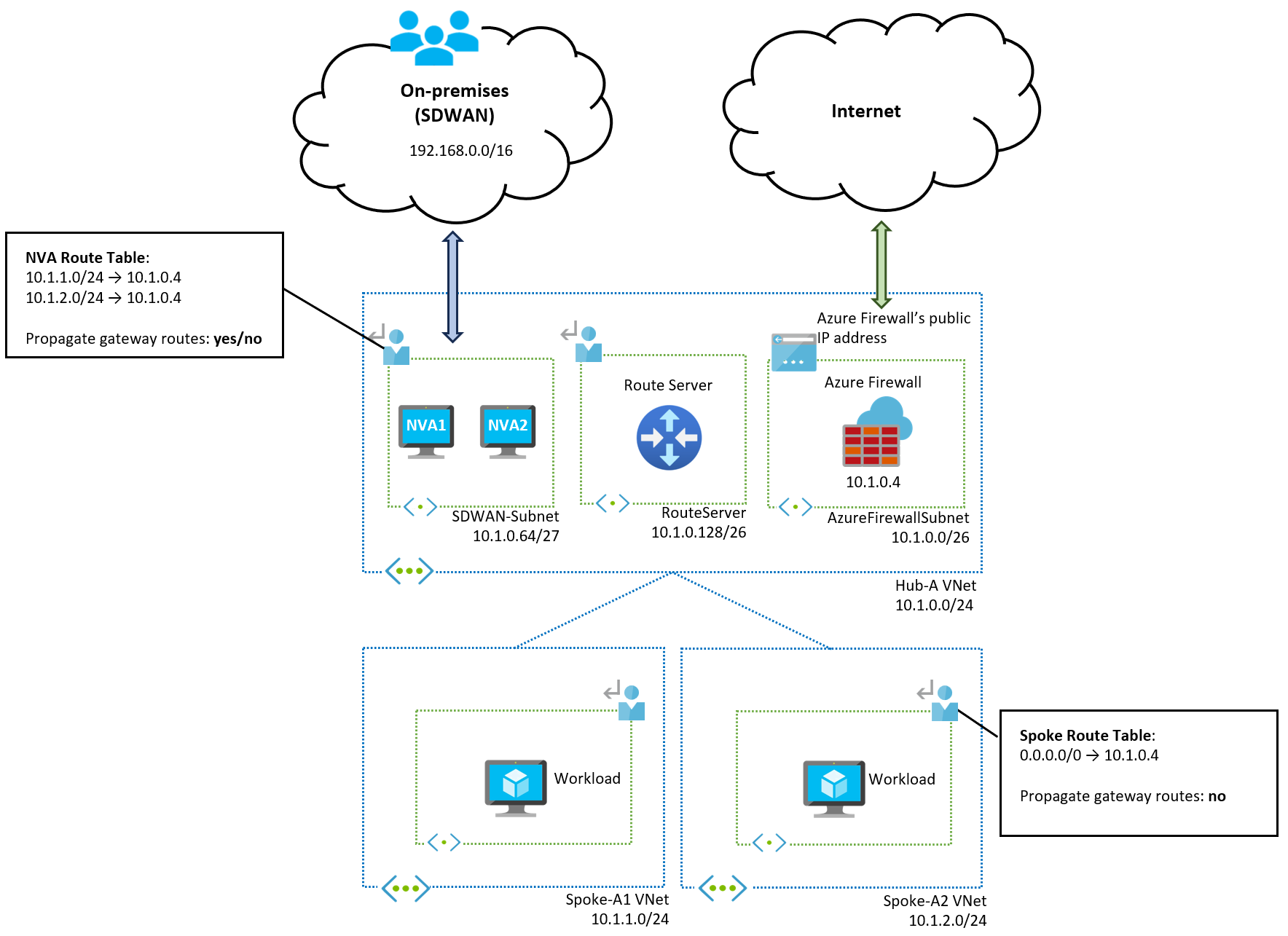 10.1.0.0/24), damit die Spokes wissen, wie Rückgabedatenverkehr geroutet werden soll. -